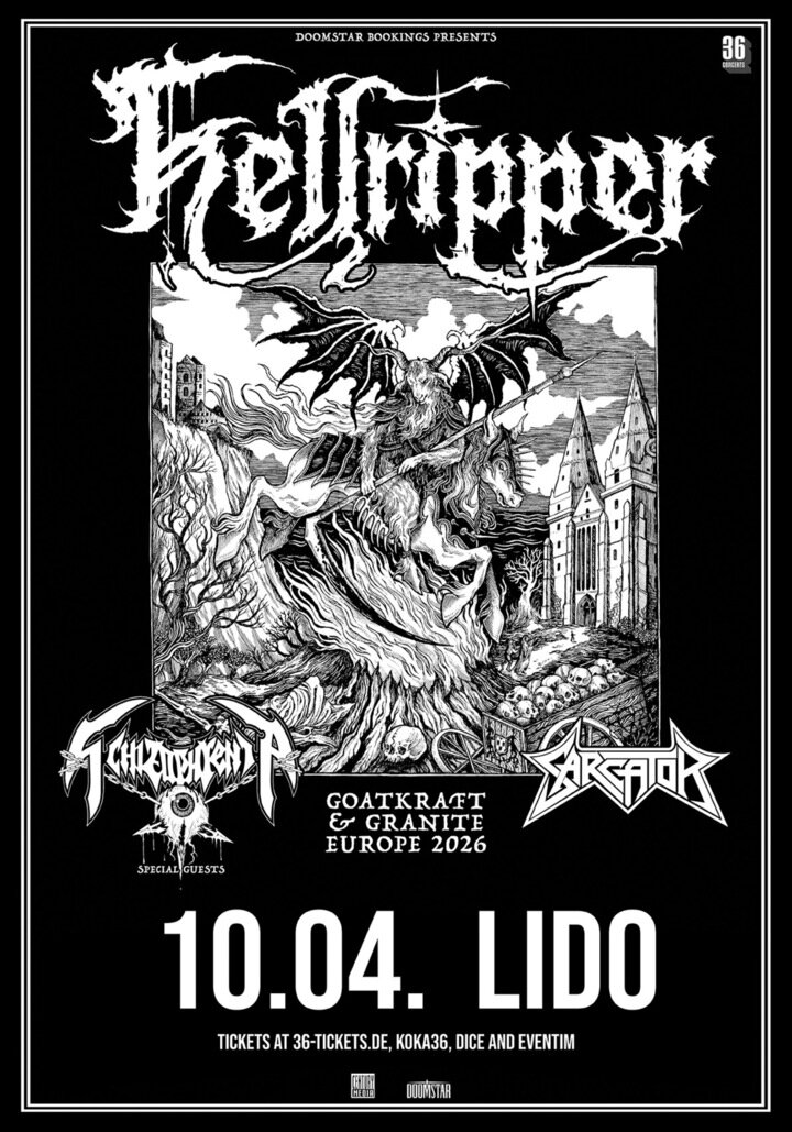 Crowned “Scotland’s King of the arcane mosh” by Metal Hammer magazine, Hellripper aims to invoke the quintessential “black ‘n’ roll” sound, mixing influences from classic 80’s black metal records with a more modern edge. Heavily inspired by witchcraft and the supernatural, Hellripper is also deeply rooted in its Scottish origins, using the landscape, legends and historical events as a backdrop for its lyrics and imagery.Hellripper is fast, loud and uncompromising. All hail the goat!