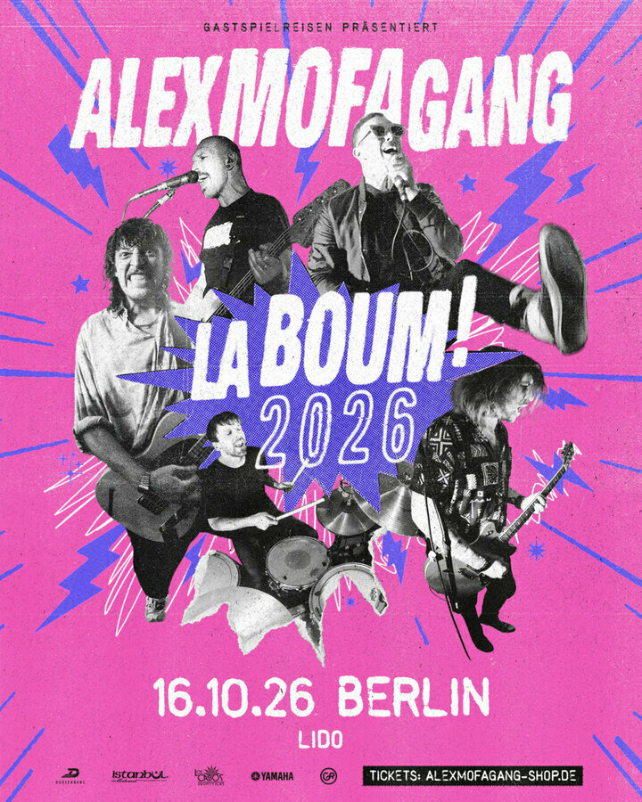 3, 2, 1… Zündung! Wenn die Alex Mofa Gang auf Tour geht, knallt’s. Denn Konzerte sind das Epizentrum dieser Band. „La Boum! 2026“ feiert die Leidenschaft für kreischende Boxen, Freudentränen und Tanzschweiß. Doch damit nicht genug: Die Alex Mofa Gang kommt 2026 nicht mit leeren Händen zurück in die Clubs. Aber dazu später mehr.